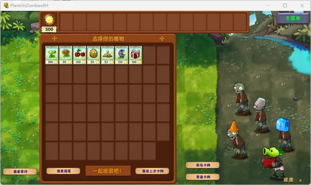 融合版在选择的时候要选两遍,而且种植的时候也挺有意思的,土豆上面可以种植向日葵,豌豆上面还可以做植豌豆,向日葵可以一个坑种两棵。