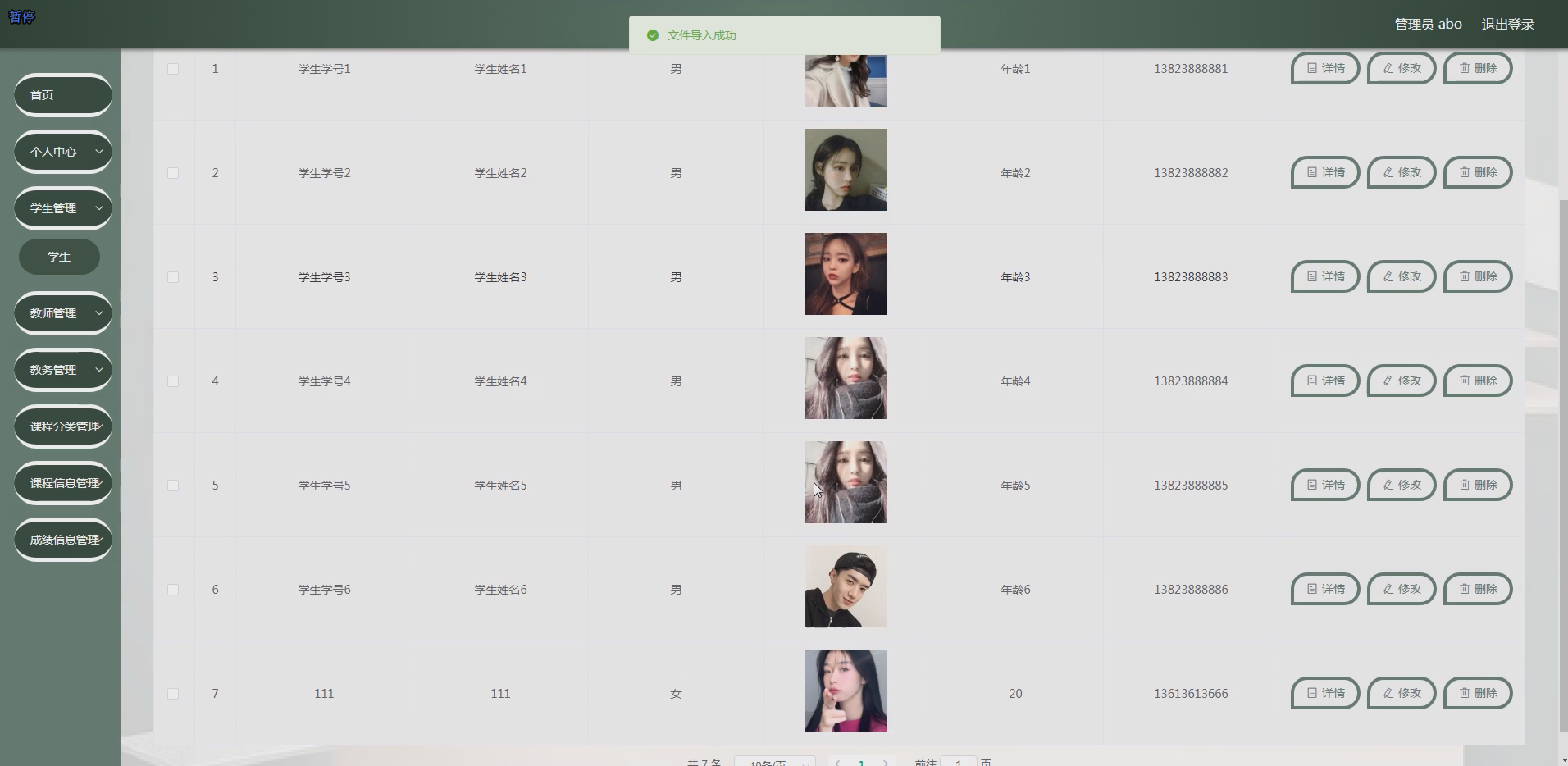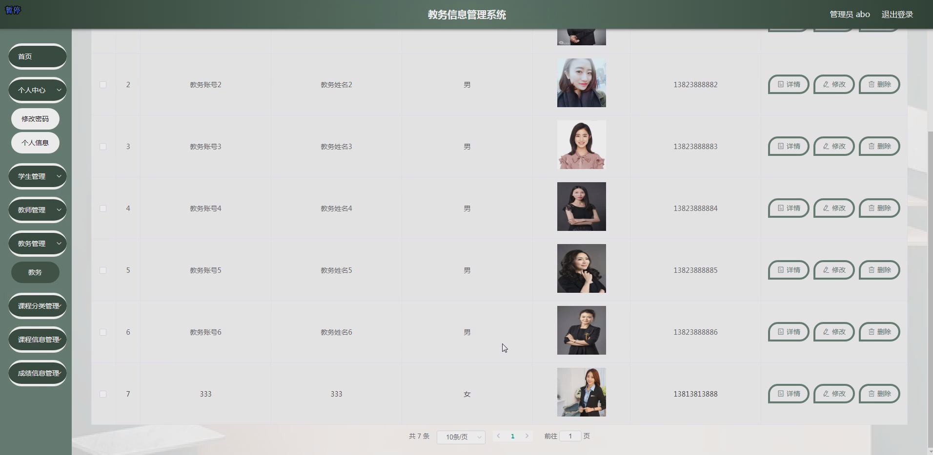 - 基于 SSM 框架,设计并开发一套功能完善、性能稳定、操作便捷的教务信息管理系统,实现学生、教师、教务、课程分类、课程信息、成绩信息六大核心模块的一体化管理。