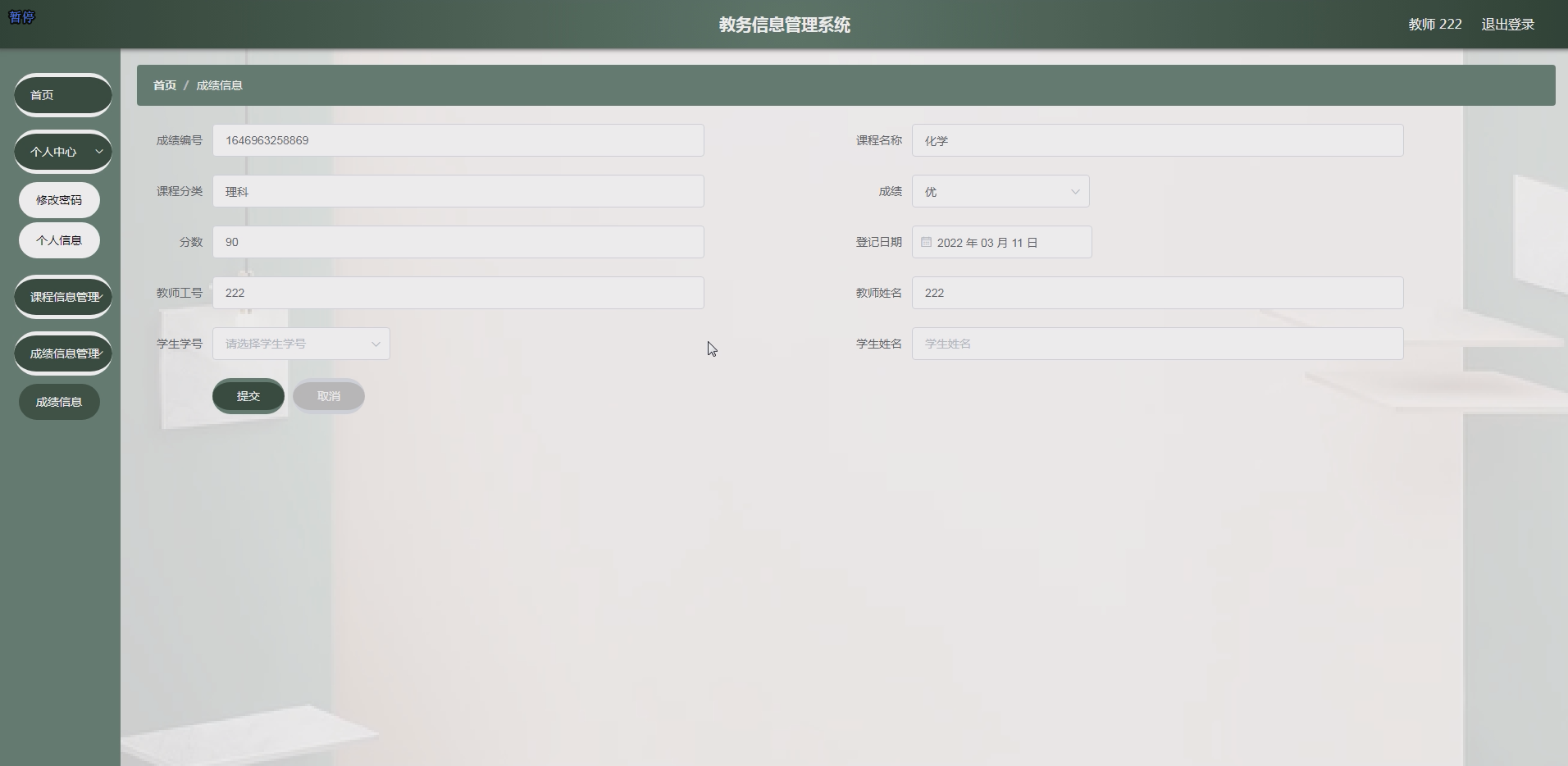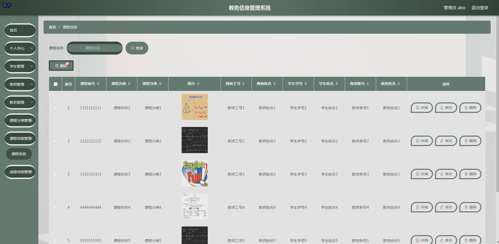 学生,教师,教务,课程分类,课程信息,成绩信息