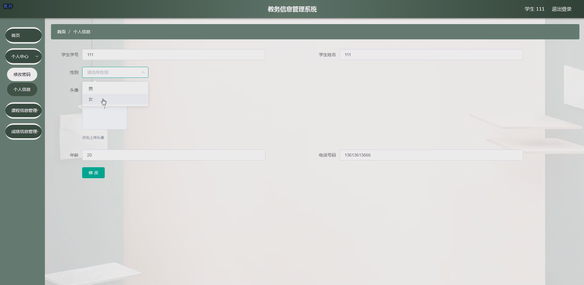 - 学生模块:实现学生注册与登录、个人信息查询与修改、课程查询与选课、成绩查询、请假申请等功能;通过权限控制,确保学生只能操作自身相关的信息。