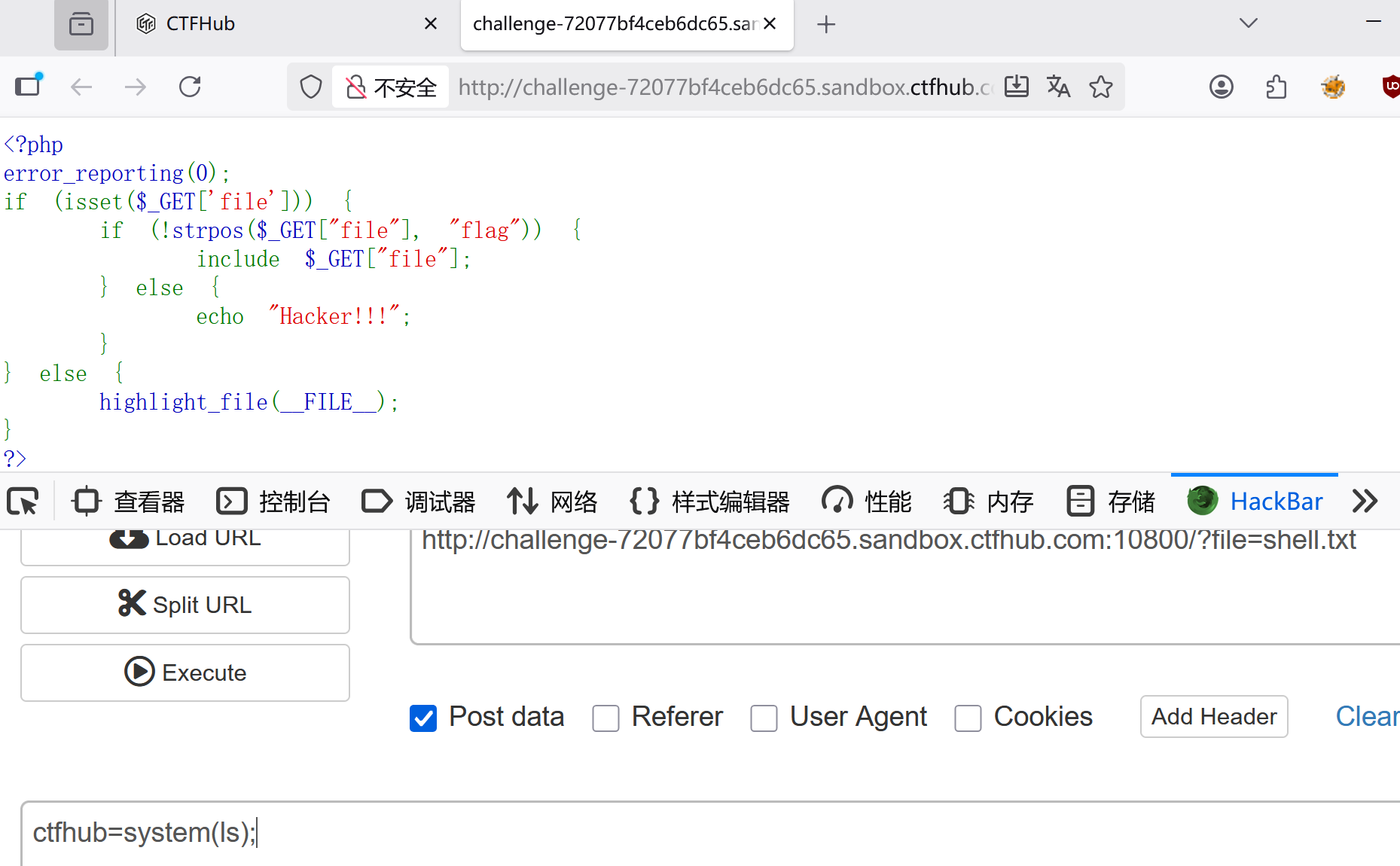 http://challenge-xxx.sandbox.ctfhub.com:10800/?file=shell.txt