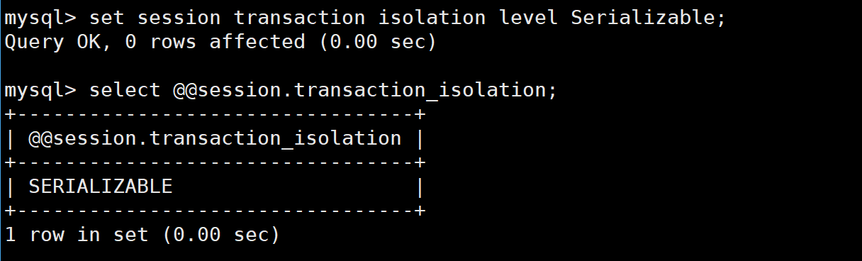 通过”set session transaction isolation level 隔离级别“命令,可以设置当前会话的隔离级别。如下: