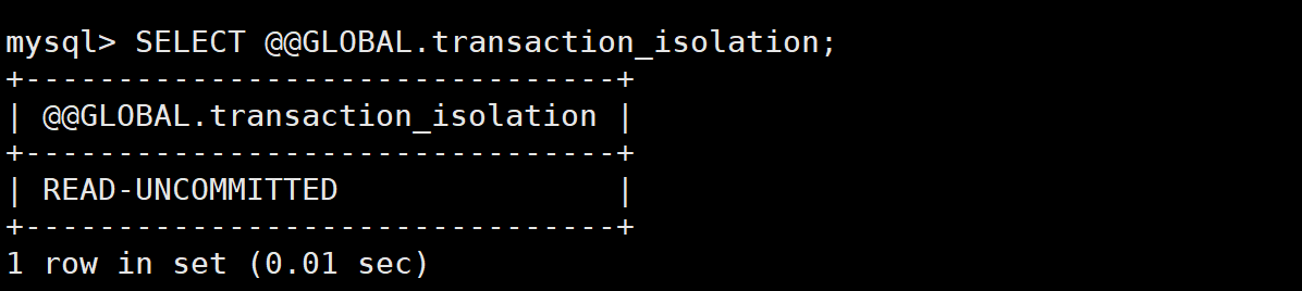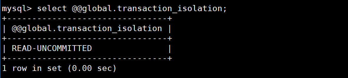 这里我们设置的是全局隔离级别,当前会话的隔离级别不会改变,只会影响后续与MySQL新建立的连接,因此需要重启终端才能看到会话的隔离级别被成功设置。如下: