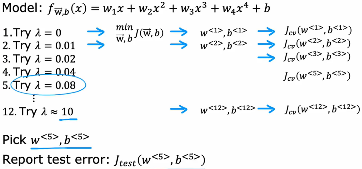 这三个集分别计算一个误差。在得出每个模型的最优参数后,先对比各个模型在此参数下的验证集误差,找出误差最小对应的模型并使用这个模型的参数,然后再把测试数据输入最优模型计算测试误差,以证明其泛化能力