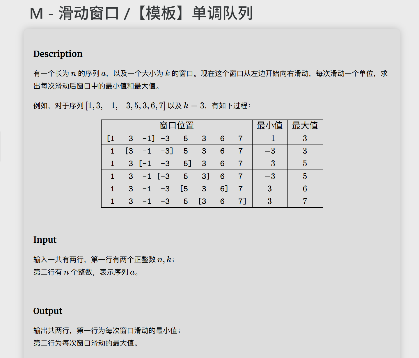 模版题,又要痛苦学习新东西。这篇题解把滑动窗口讲的非常清楚了。