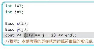 int main(void) {int i = 2;int j = 7;Base x(i);Base y(j);cout << (x + y == j - i) << endl;return 0;