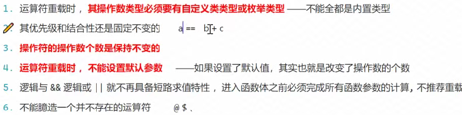赋值=,下标[],调用(),成员访问->,成员指针访问->*运算符必须是成员函数形式重载