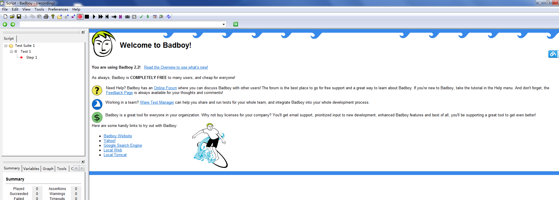 2.直接点击badboy.exe即可安装,安装完毕打开即看到下面的界面: