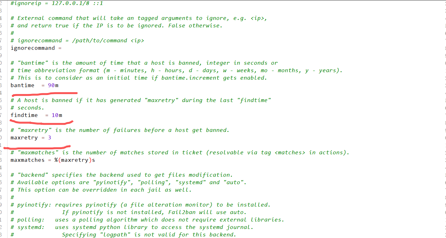 cp /etc/fail2ban/jail.conf /etc/fail2ban/jail.local