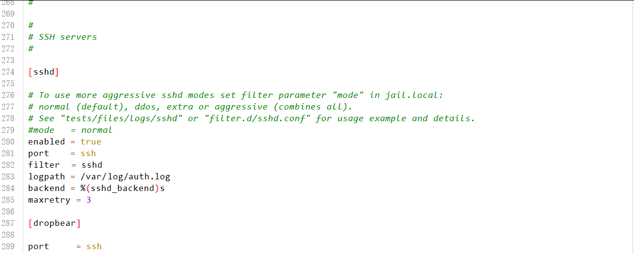vi /etc/fail2ban/jail.conf