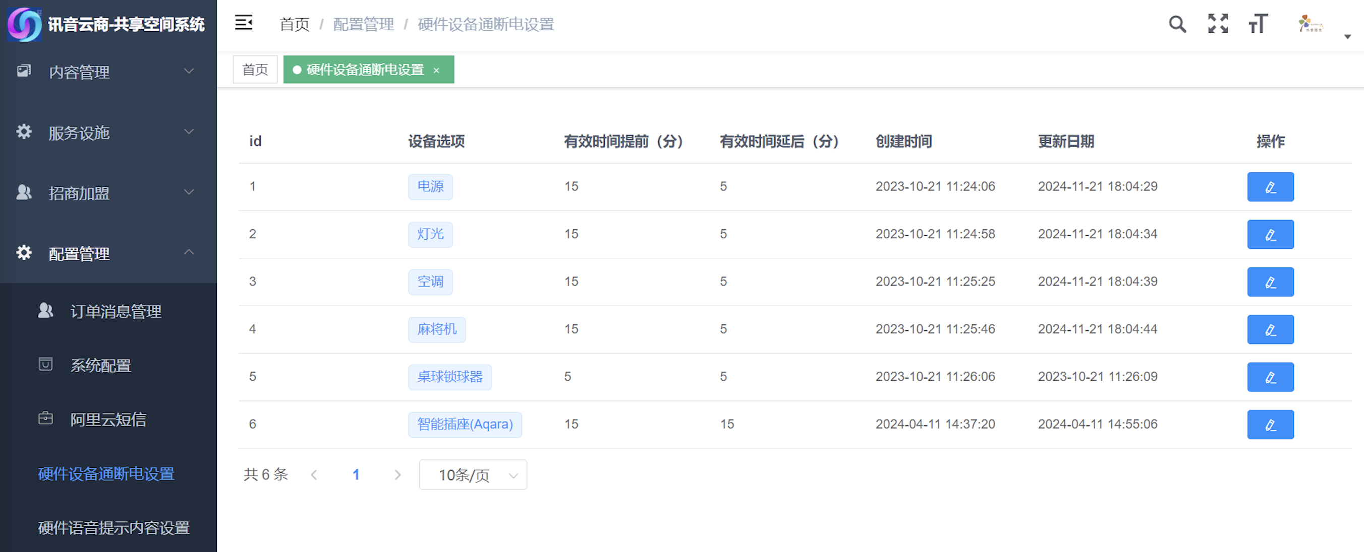 8.硬件设备通电设置,可设置电源、灯光、空调、麻将机、桌球锁球器、智能插座在订单开始 提前几分钟开启、订单结束延后几分钟关闭