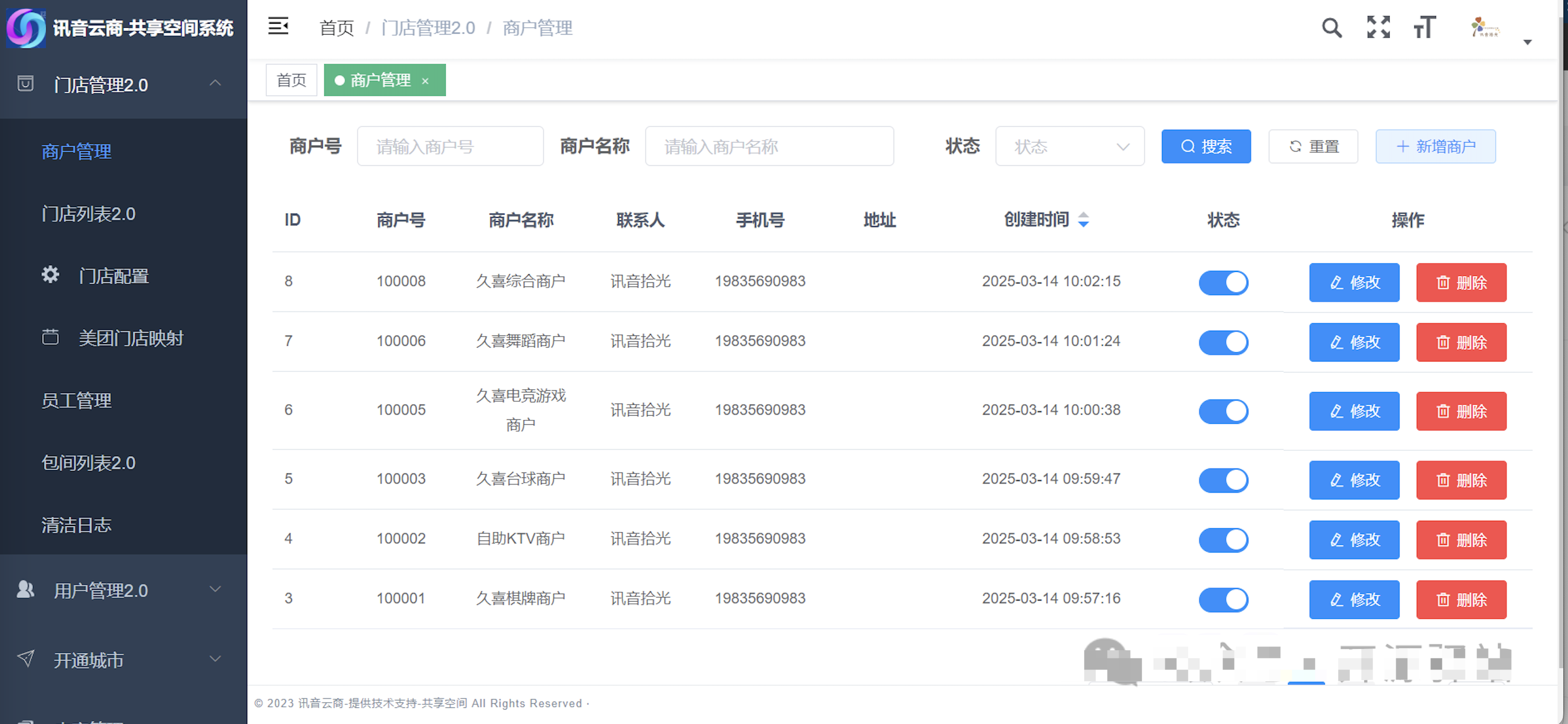 5. 多门店支持:每个门店可以单独设置管理员、保洁员