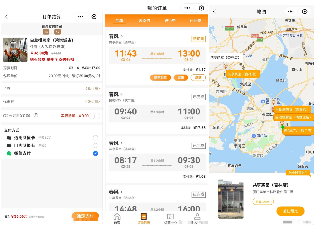 9. 订单预约支付:支持多种支付方式(团购兑换卡券、微信、余额支付),可设置最低预约时间、积分抵扣、会员折扣等