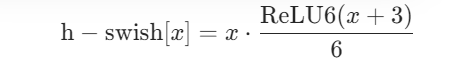本层之后要经过batchNorm进行归一化,以及h-swish[x]激活函数,如下图: