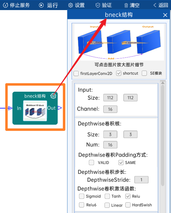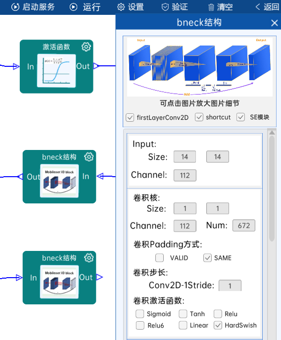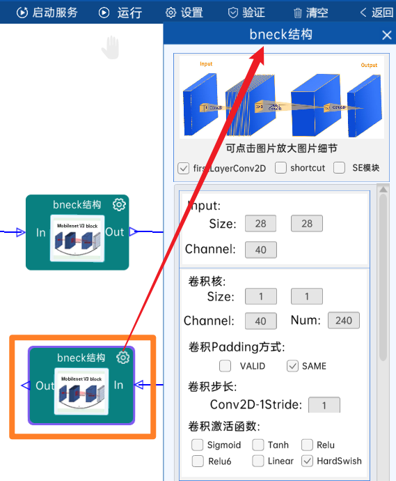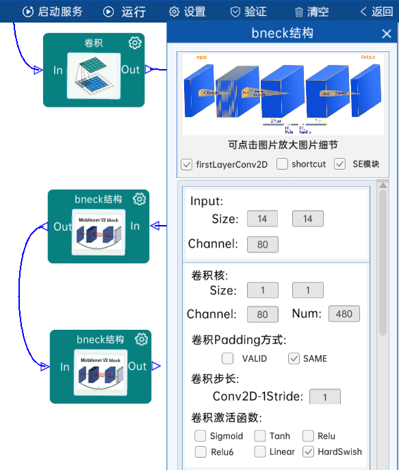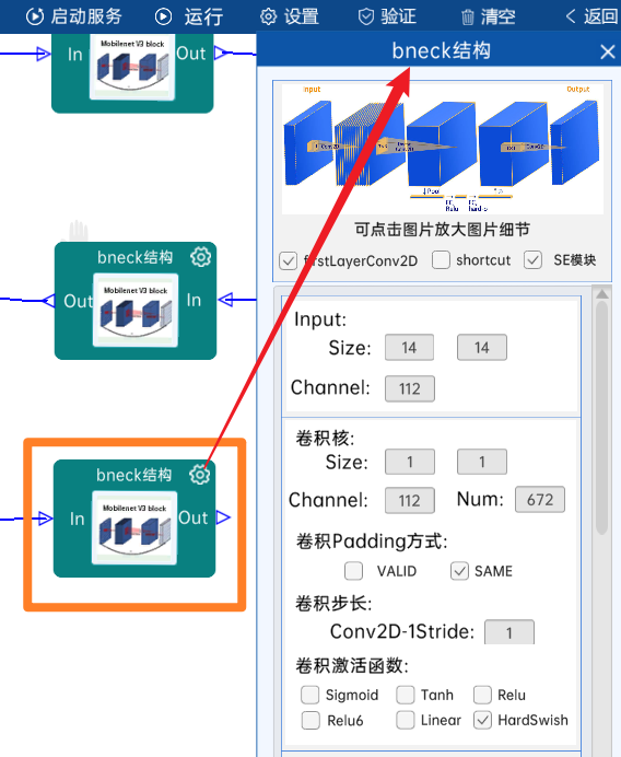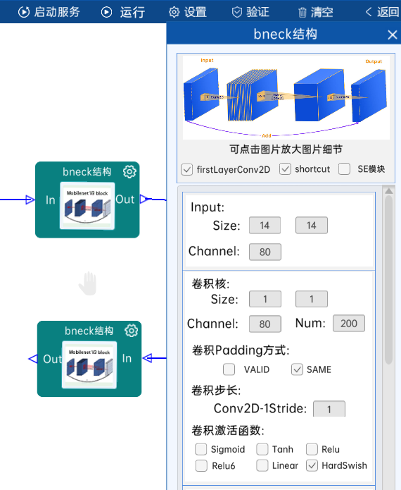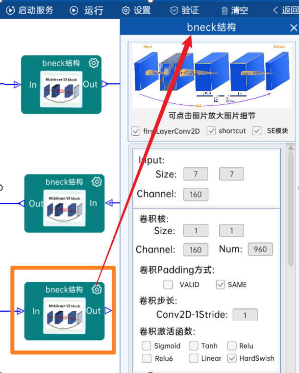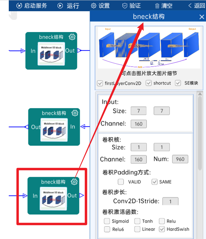 下面结合虚拟仿真的组件,对MobileNetV3的网络结构进行分析。