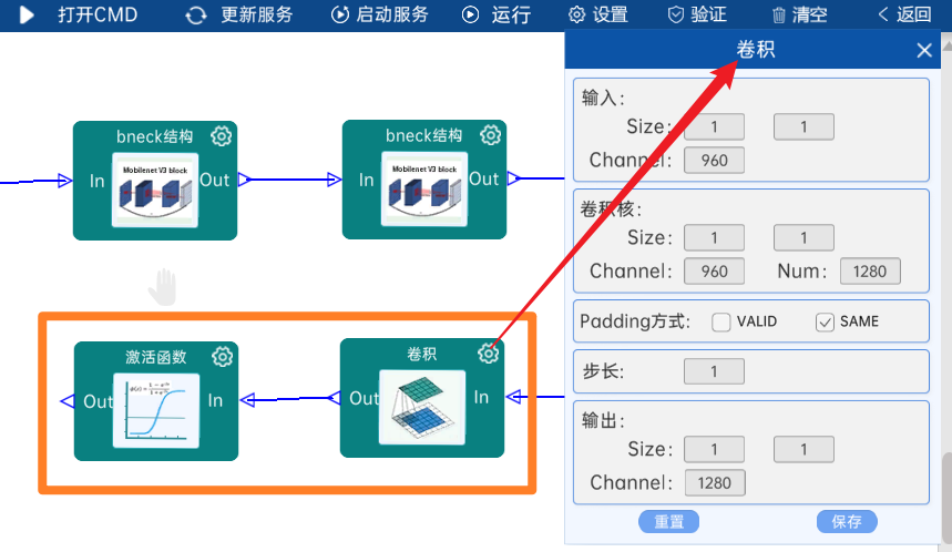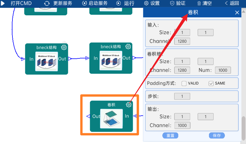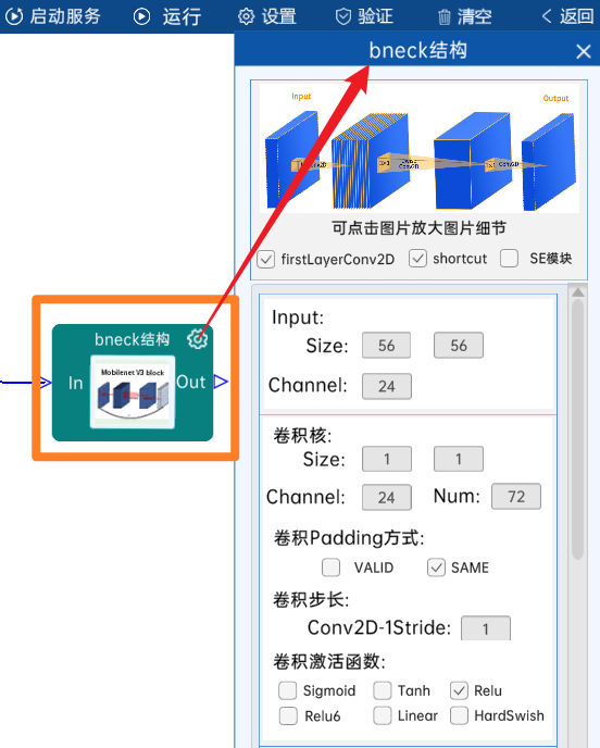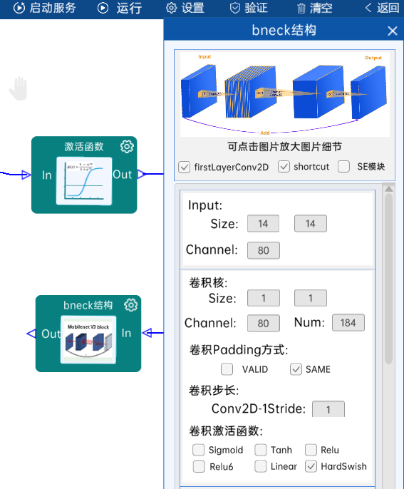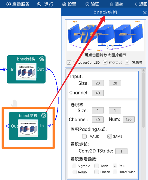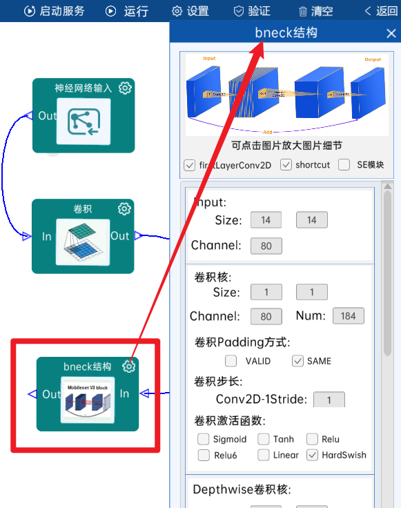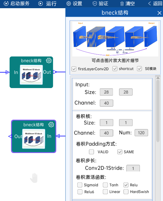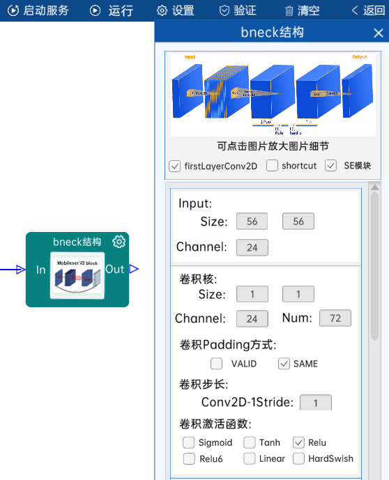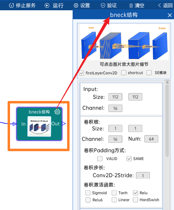 下面结合虚拟仿真的组件,对MobileNetV3的网络结构进行分析。