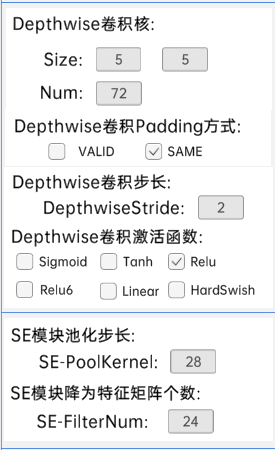 本bneck结构第三层SE模块,包含AvgPool、FC1以及FC2,其中,AvgPool池化核大小为(28 x 28),FC1的节点个数是24,FC2的节点个数是72。