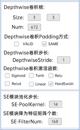 本bneck结构第三层SE模块,包含AvgPool、FC1以及FC2,其中,AvgPool池化核大小为(14 x 14),FC1的节点个数是168,FC2的节点个数是672。