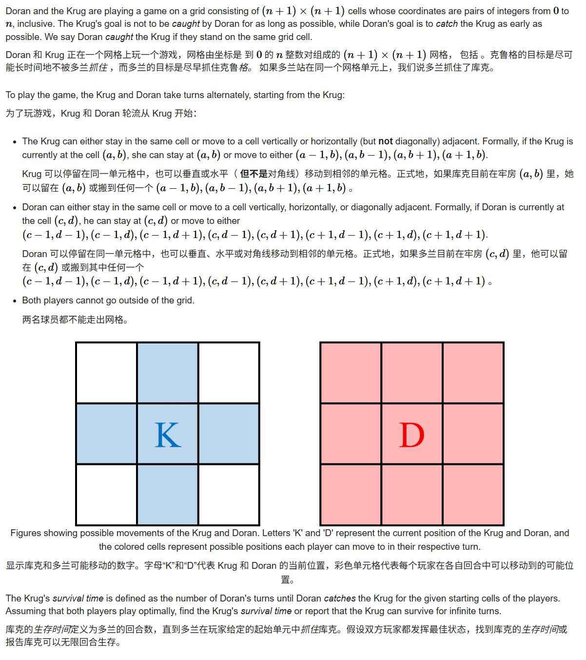 那么,我们只需要去这俩种情况的最大值就好了,因为A想晚点被抓到,所以B肯定要走更多的操作次数