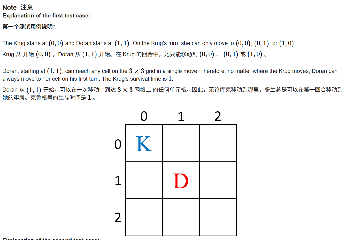 那么,既然A已经知道自己会被堵,那么A肯定会移动到最远的位置,然后不动,这样才能躲得更久,那么A可以去上下的边界,也可以去左右的边界,那么具体去哪里也要看A与B的位置关系
