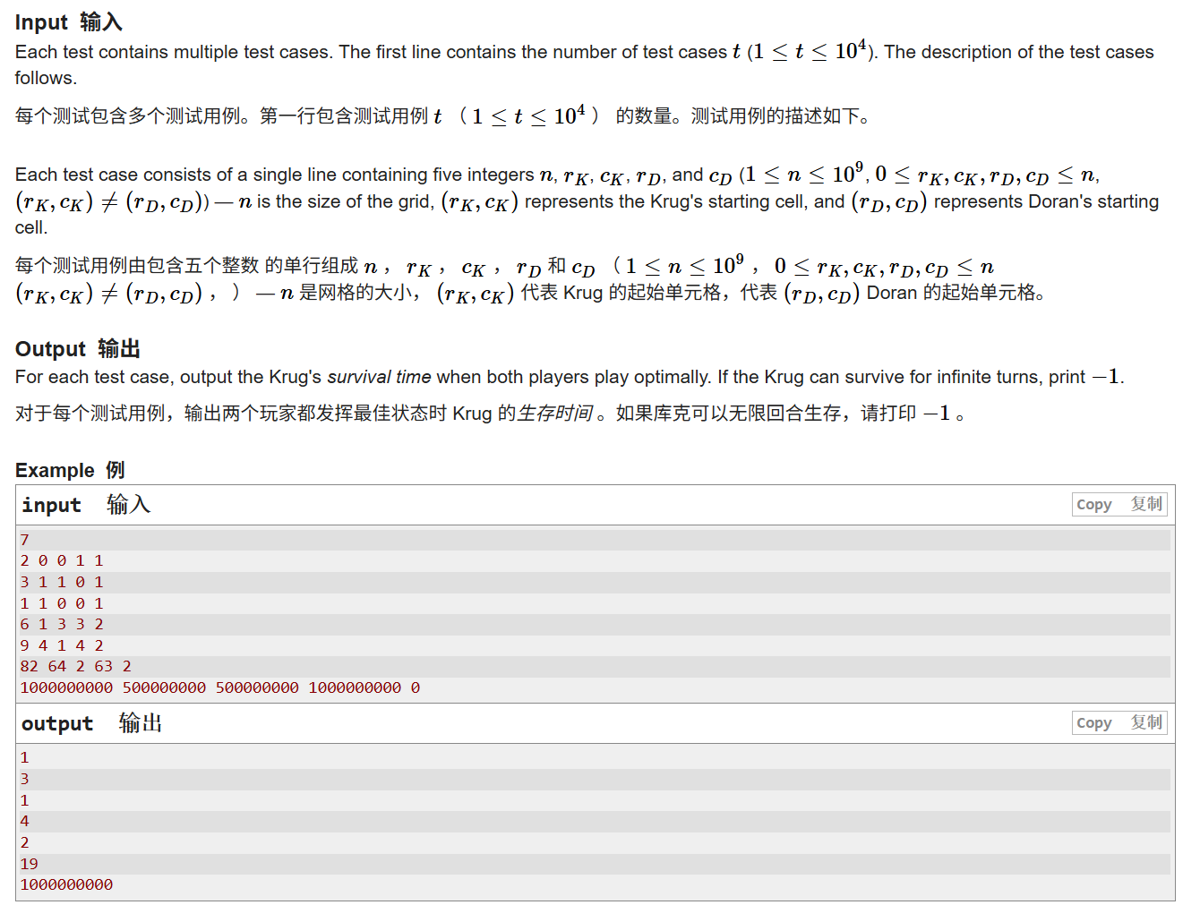 然后会问你t种情况,每种情况先告诉你A的坐标再告诉你B的坐标