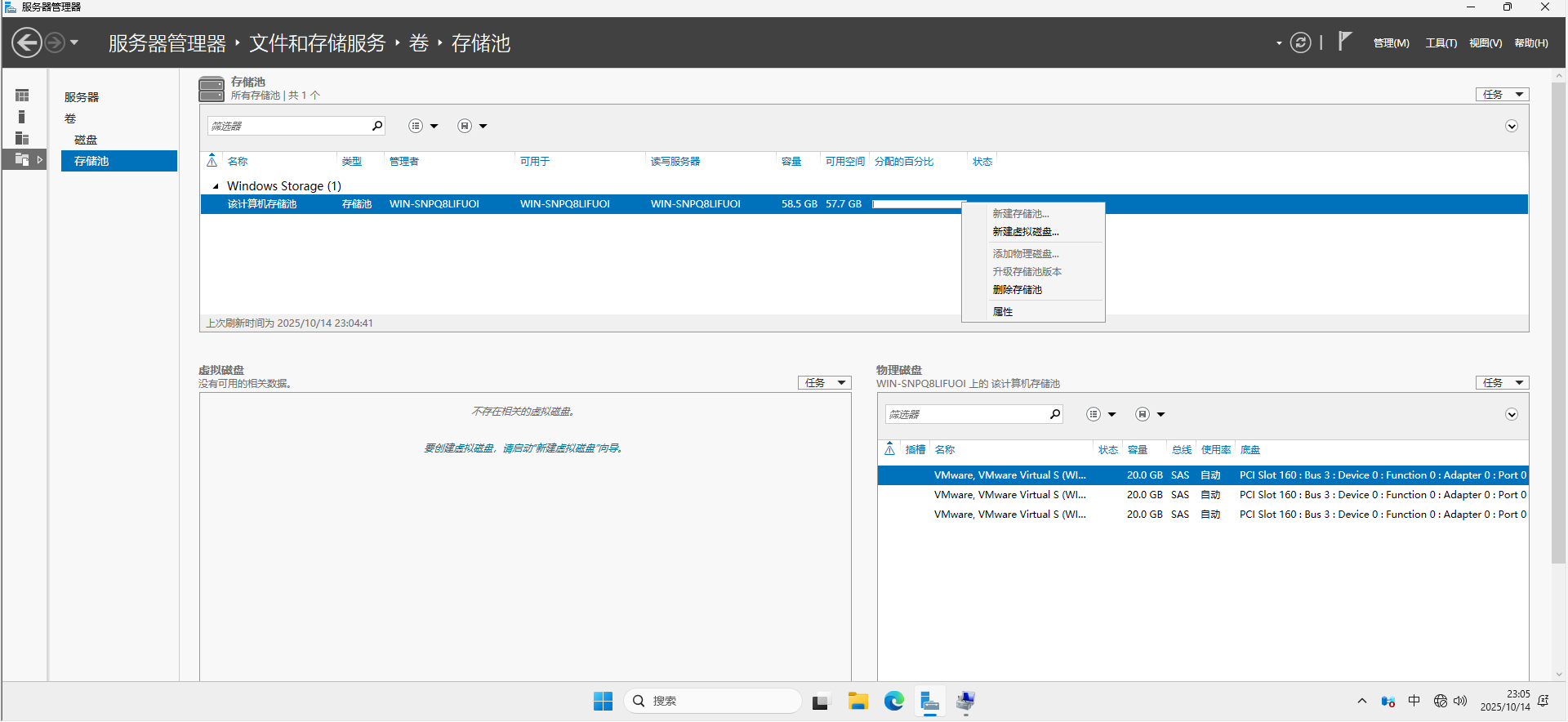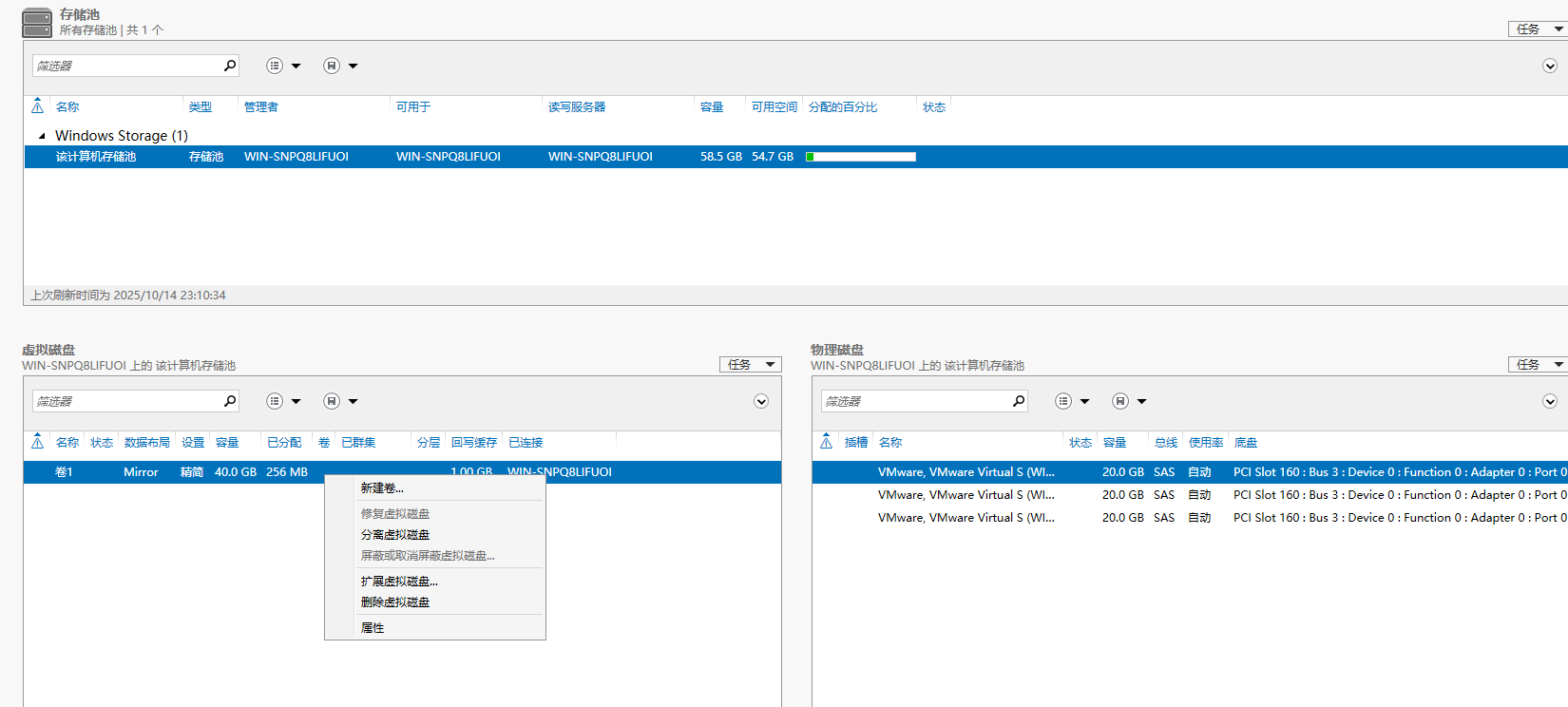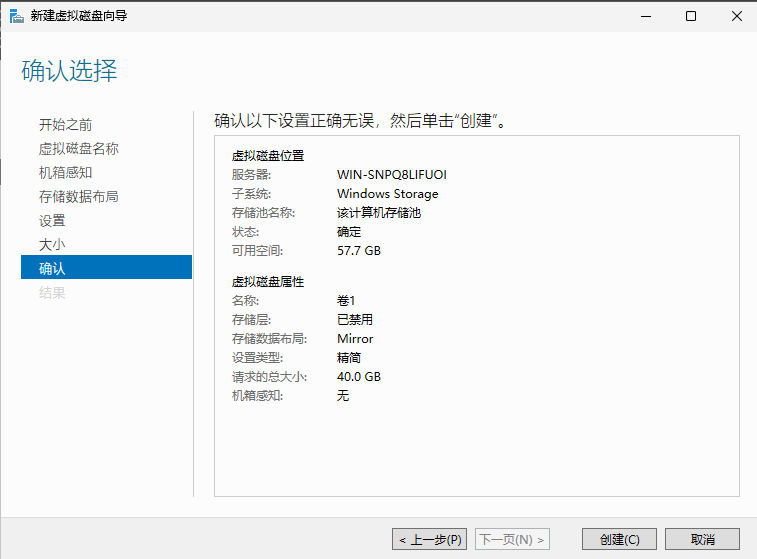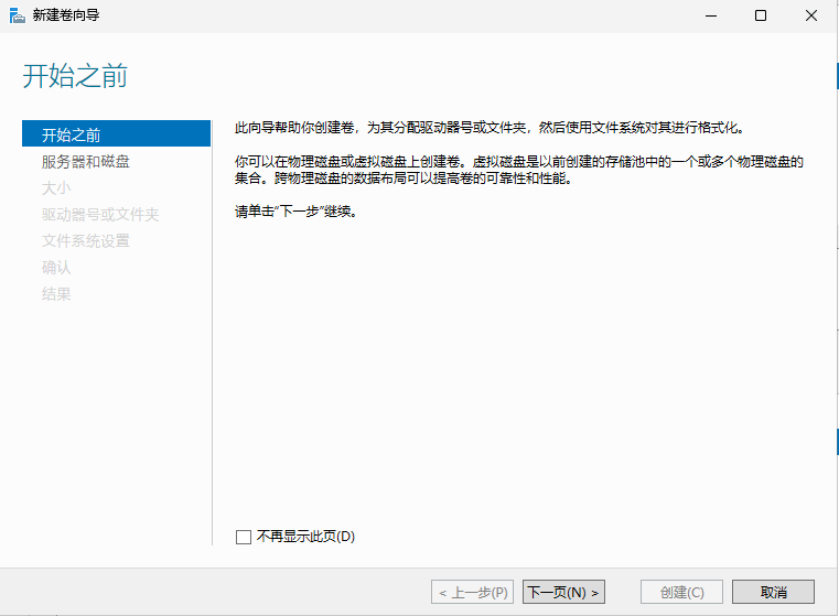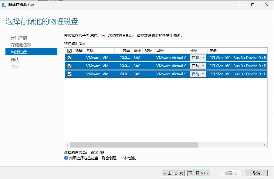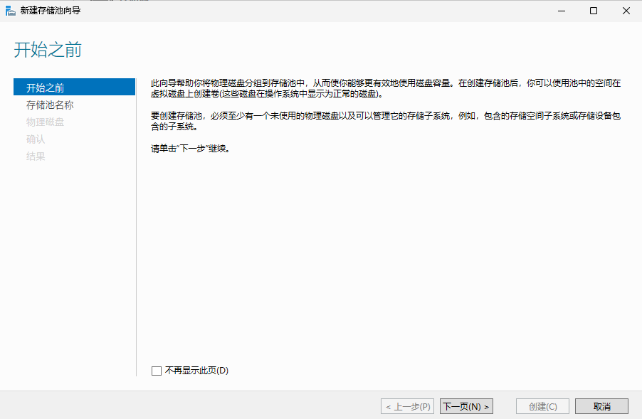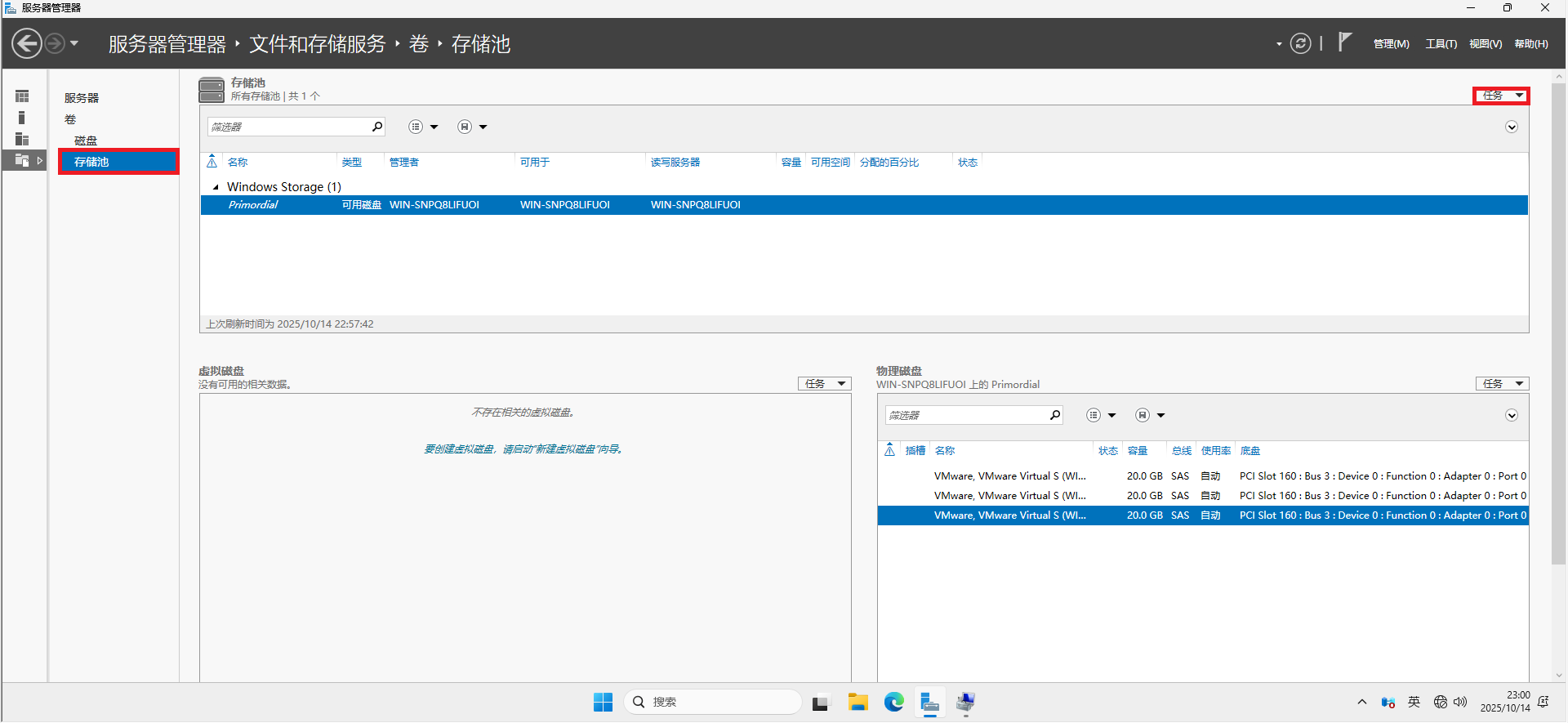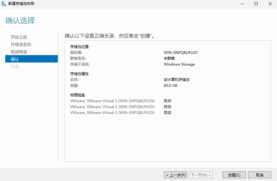 创建完存储池之后,3块磁盘便在逻辑上成为了一块磁盘。接下来我们在该磁盘上进行分区。