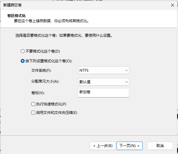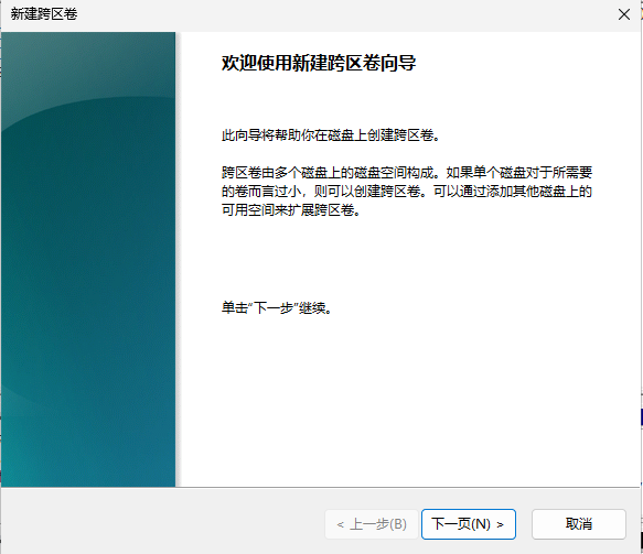 跨区卷顾名思义就是将两块新添加的磁盘变成我们计算机使用中的一个D盘或者E盘,也就是把不同的磁盘划分在一个区内。