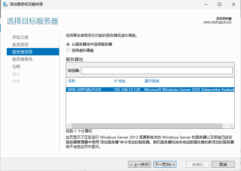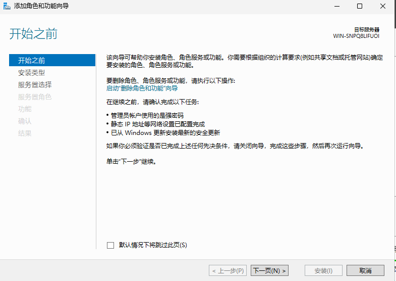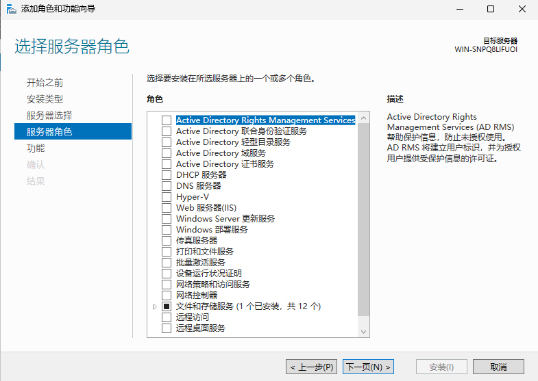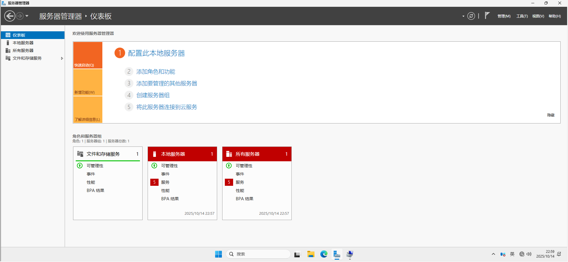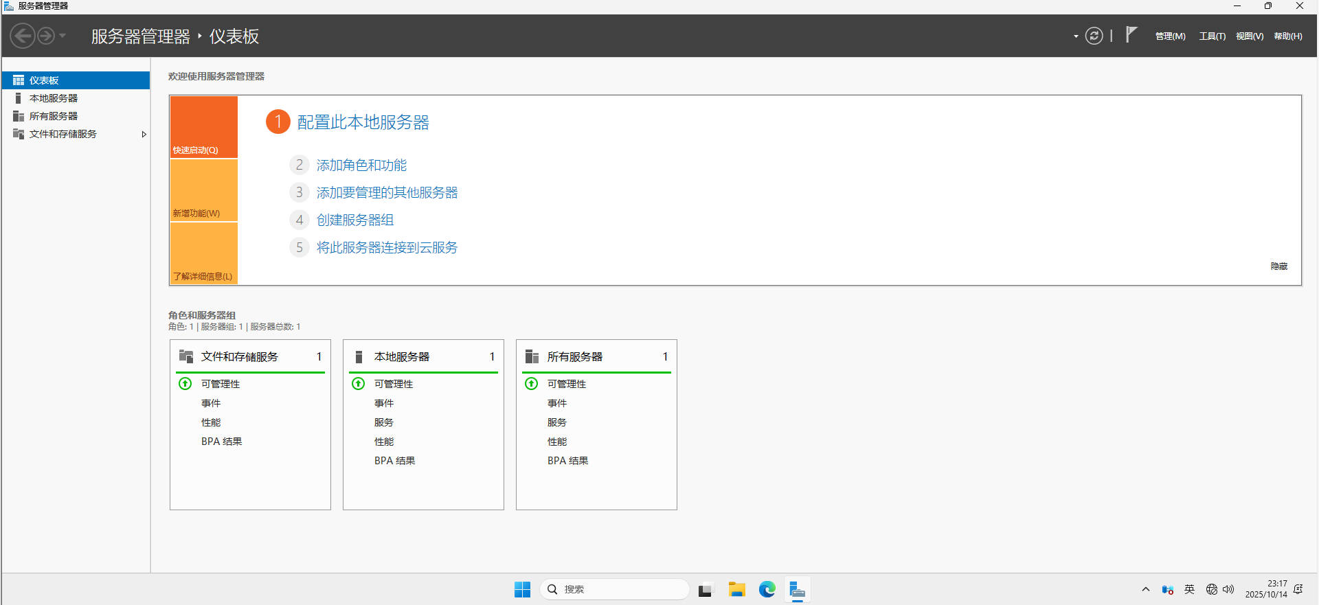 在服务器管理器的仪表盘页面下选择添加角色和功能。
