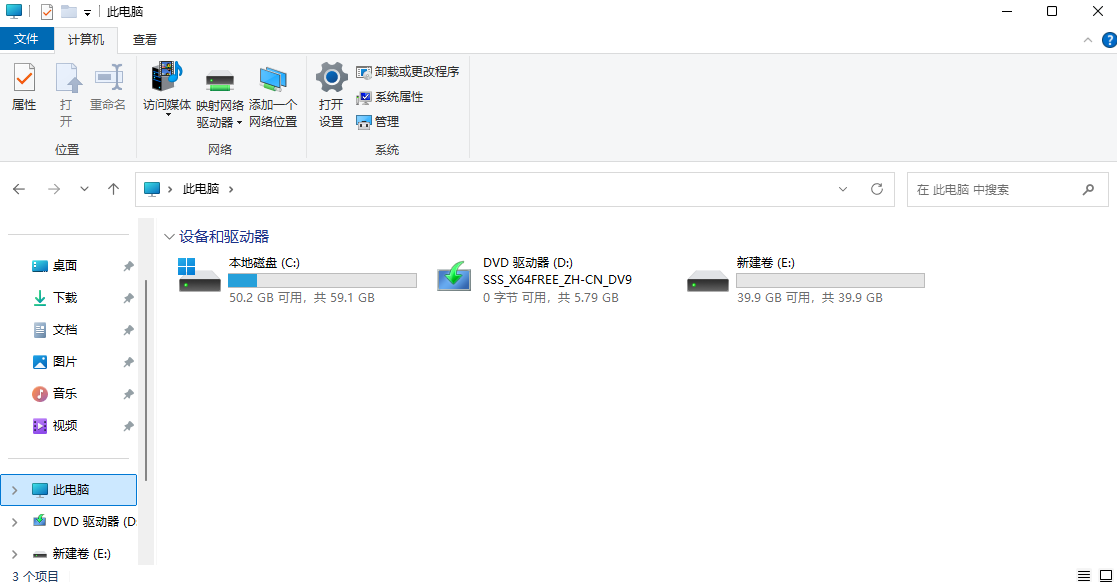 创建完成之后便会发现我们的计算机中多了E盘,刚好也是我们设置新卷的盘符。