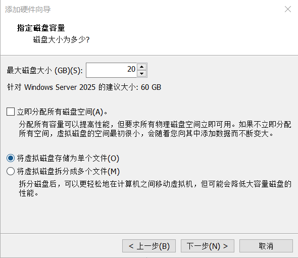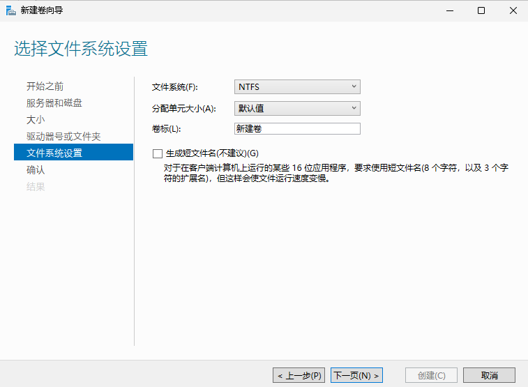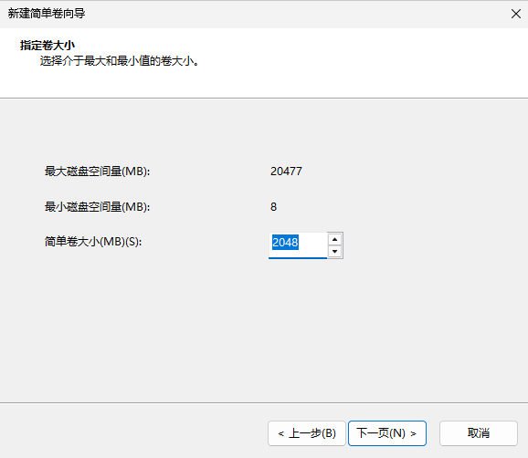 这里可以选择卷的大小,我们试着将这个磁盘分为多个部分,看看会发生什么吧。