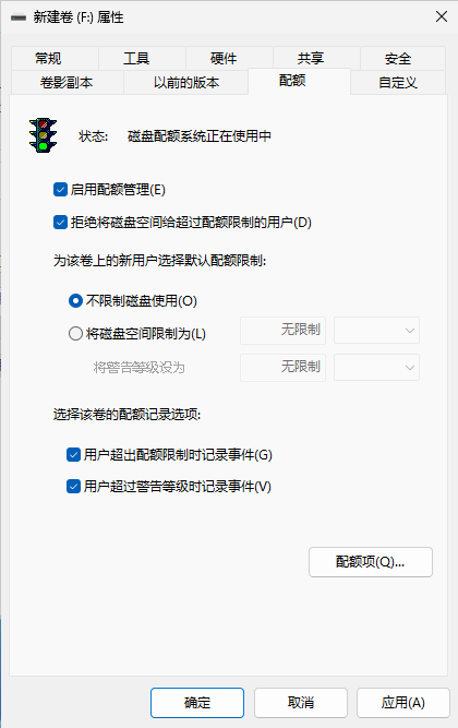 磁盘配额用于对同台计算机的其他用户进行空间分配。