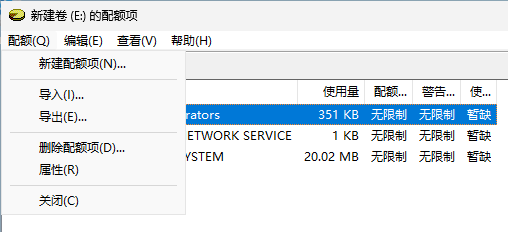 选择配额选项,并启动配额。并点击配额项开始配额。