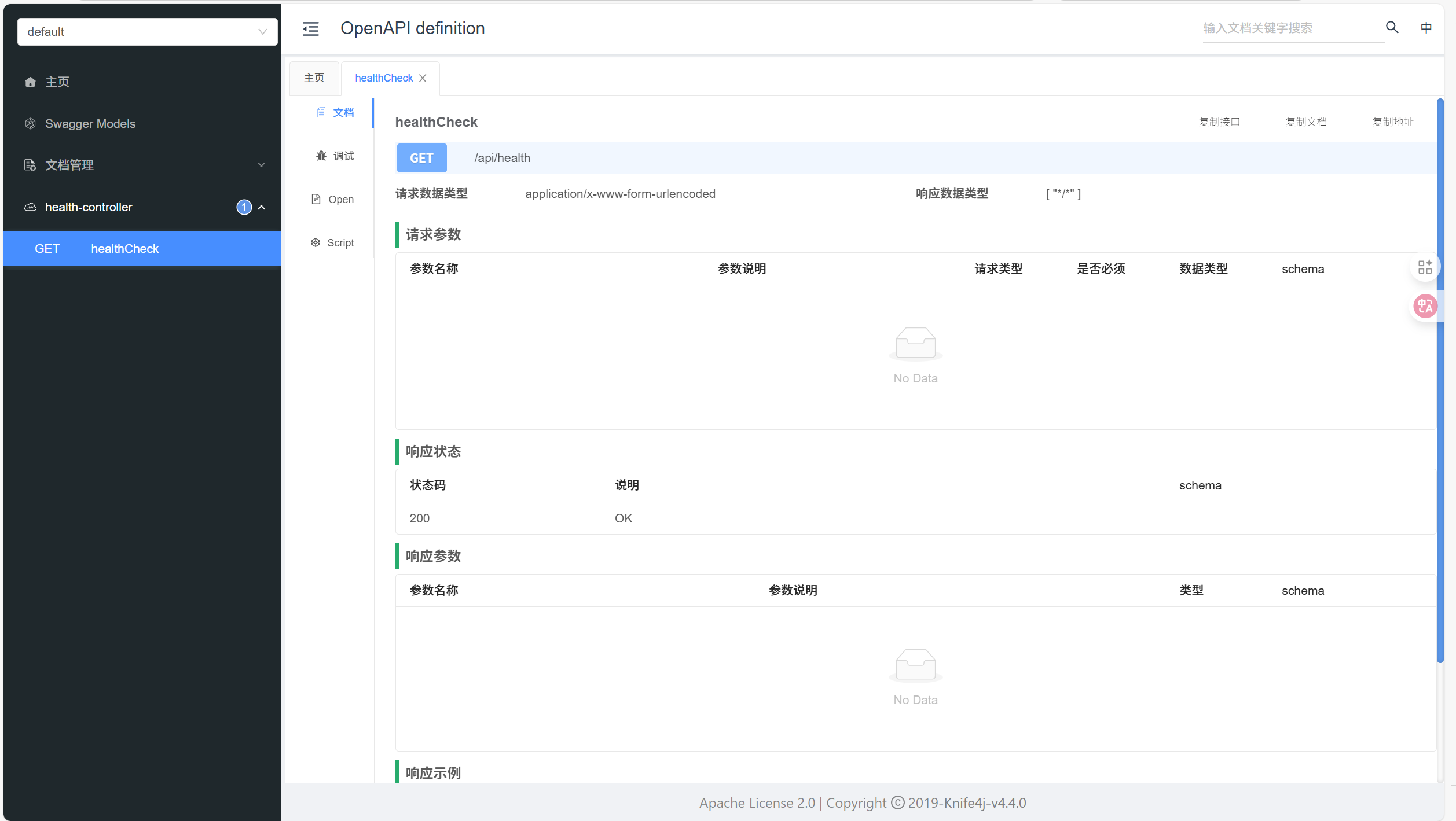 2)新建 controller 包用于存放 API 接口,编写一个健康检查接口用于测试接口文档是否正常引入: