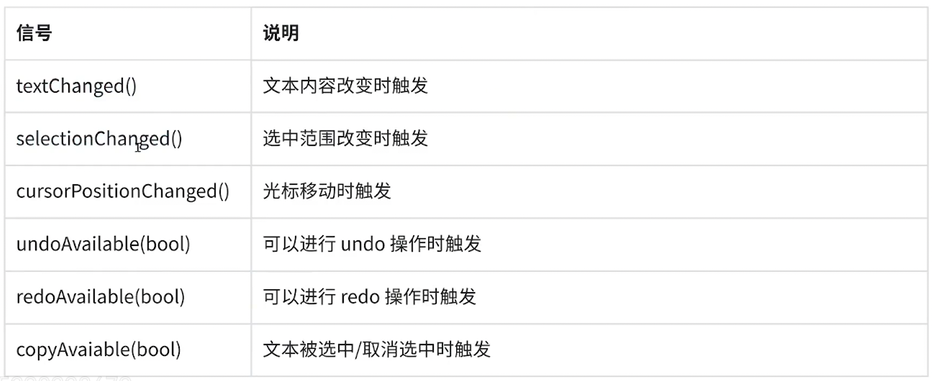 信号在文本内容发生改变时触发,可用于实时监控文本变化,如自动保存草稿等功能。 - 内容获取与设置:通过