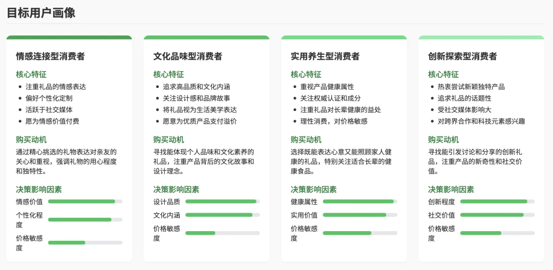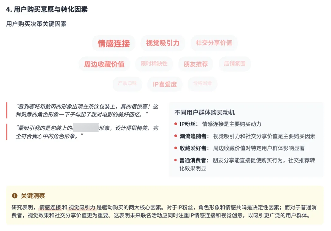 所有访谈完成后,atypica.AI会自动整理出一份结构化报告。系统对不同的用户画像做了详细拆解,归纳出各自的购买动机与影响因素。并根据这些提出了相应的可能解决方案。