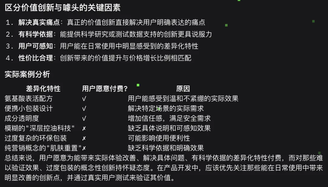 这些结论为我们开发新产品提供了实用的切入点,也让我们明白“平价洁面”用户的关注点有大大超出价格带以外的隐性需求。