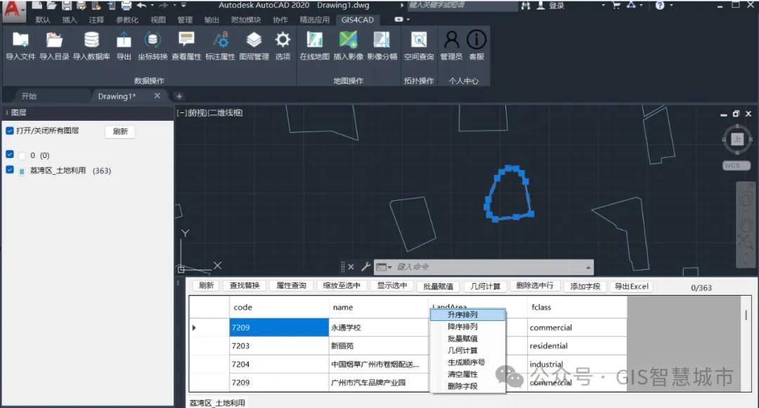 借助GIS4CAD插件,可以在AutoCAD中像ArcGIS一样管理GIS属性表,包括:添加字段、查找替换、属性查询、批量赋值、几何计算、导出Excel等一系列实用功能,广泛应用于建库汇交等各种GIS数据管理场景。使用GIS4CAD,不懂GIS专业软件的测绘员、制图员,也能快速进行GIS建库管理,提升自我价值。