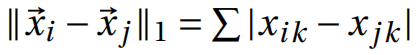 曼哈顿距离:当p=1,