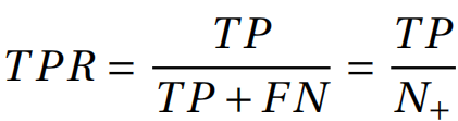真正例率:实际为正例的样本中,有多少预测为正(召回率):
