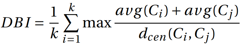 DB指数:首先对于每个簇,计算它与其他簇的簇内样本平均距离之和与簇中心点距离之比的最大值,再对每个簇求平均。