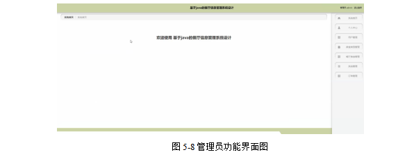 管理员登录进入餐厅信息管理系统可以查看首页、个人中心、用户管理、美食类型管理、餐厅美食管理、系统管理、订单管理等信息,进行相应操作,如图5-8所示。