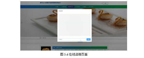 点击在线咨询,用户可以输入内容进行咨询,管理员可以在后台进行查看并回复,达到用户和管理员交流的效果;如图5-4所示: