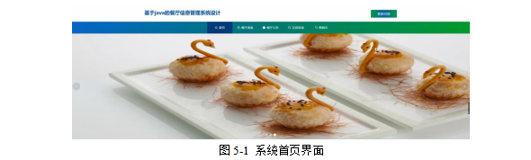 当游客打开系统的网址后,首先看到的就是首页界面。在这里,游客能够看到餐厅信息管理系统的导航条显示首页、餐厅美食、餐厅公告、在线咨询、购物车。系统首页界面如图5-1所示: