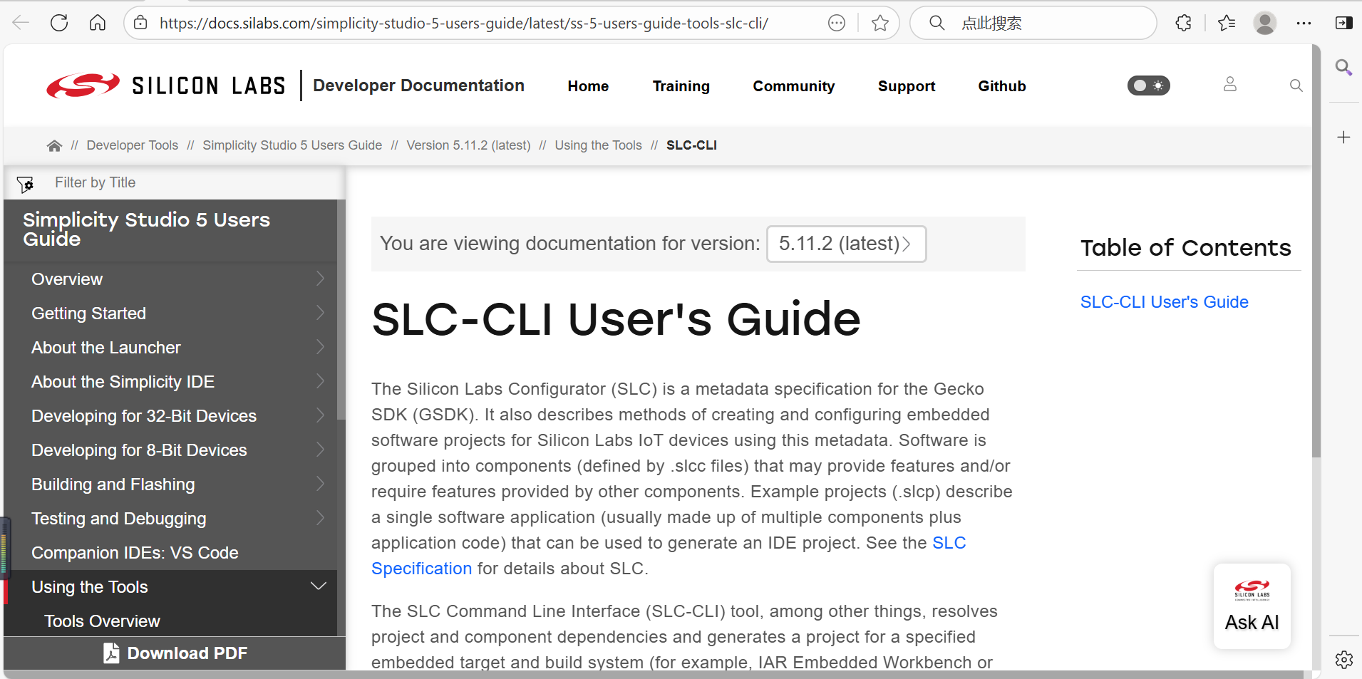 关于SLC的详情参见SLC规范(https://siliconlabs.github.io/slc-specification/1.2/)。有关安装和使用SLC-CLI的信息,参见https://docs.silabs.com/simplicity-studio-5-users-guide/latest/ss-5-users-guide-tools-slc-cli/。