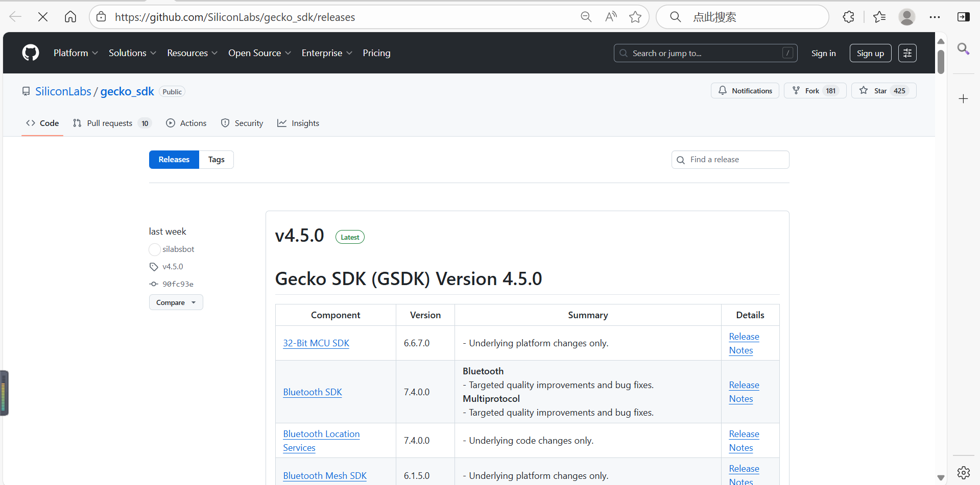 GSDK版本打包为存档,可以从GitHub上的发布页面(https://github.com/SiliconLabs/gecko_sdk/releases)下载。