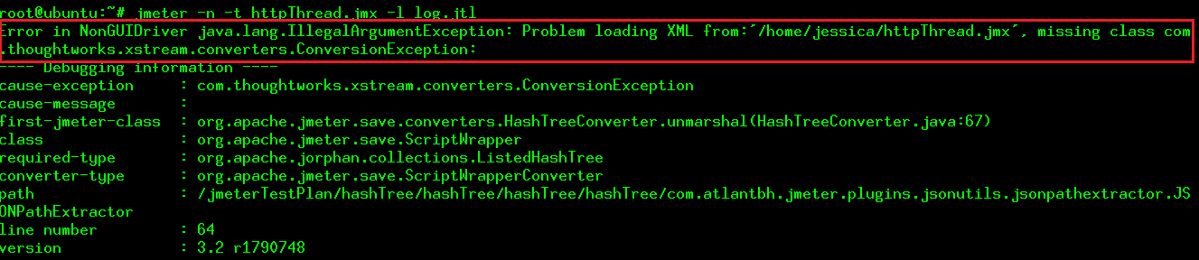 4、注意:客户端和服务器的Jmeter版本最好保持一致,不然运行脚本时会报如下错误