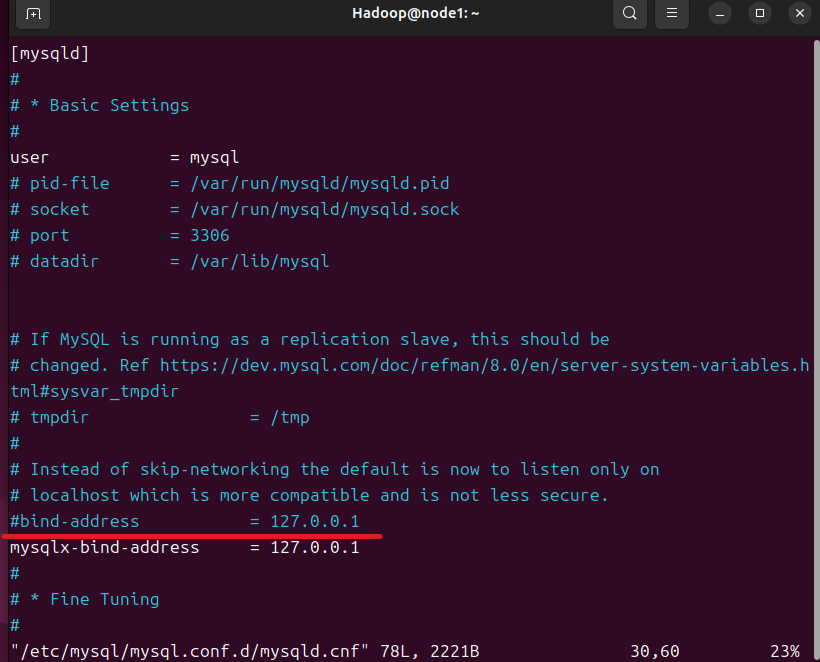 sudo vim /etc/mysql/mysql.conf.d/mysqld.cnf