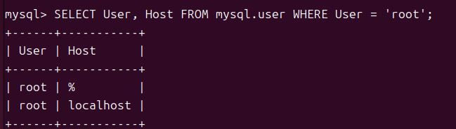 Host: %:% 是 MySQL 中的通配符,表示 “所有主机” 或 “任意 IP 地址”。意思是:允许用户名 root 从任何远程主机(包括本地服务器、同一局域网的其他电脑、甚至互联网中的设备,只要网络可达)连接到当前 MySQL 服务器。
