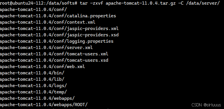 tar -zxvf apache-tomcat-11.0.4.tar.gz -C /data/server/